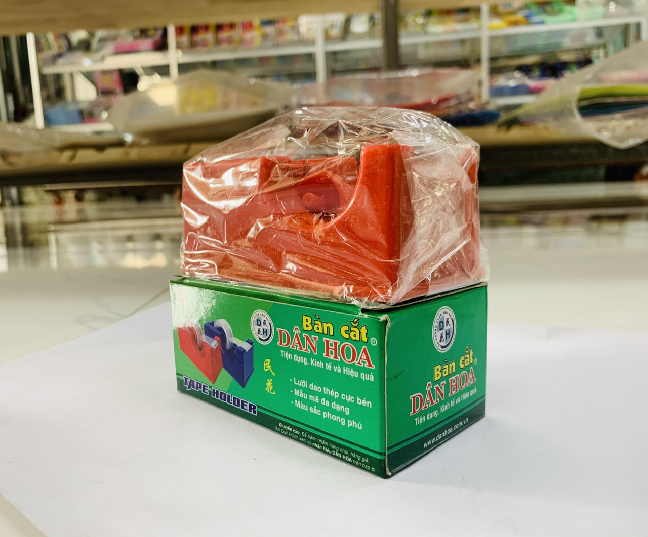 Bàn cắt băng keo Dân Hoa có thiết kế vừa tay dễ tao tác hơn khi sử dụng. Kết cấu nhựa hay sắt đều được bắt dính với nhau rất vững cho độ bên cao.