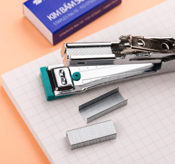 Kim bấm giấy là sản phẩm được làm từ thép cao cấp, giúp liến kết các tài liệu văn bản lại với nhau. Kim bấm có độ cứng cao, sáng bóng và không bị gỉ sét theo thời gian. Dễ dàng sử dụng và thân thiên với người dùng