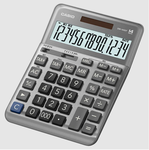 Bàn phím có nút nhấn êm ái và độ nhạy cao, mang lại sự thoải mái khi sử dụng. CASIO DM-1400F cung cấp tính năng cơ bản như cộng, trừ, nhân, chia, tính phần trăm và tính tiền tệ.