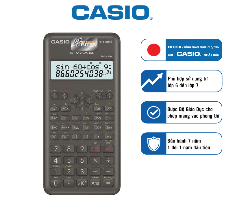 | Chức năng cơ bản | – Hàm Type,Hàm Mũ, Toạ độ Đê-cac 1, toạ độ cực,Tổ hợp, chỉnh hợp, Kí hiệu kỹ thuật, Đổi độ phút giây 1, số thập phân, Phần trăm, Dấu ngoặc, Làm tròn, Phân số,Hiện lại, Phương trình, Nhập (-), Exp, p