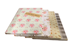 – Bìa được ép bằng giấy cacton rất cứng cáp. Giấy kẻ ô ly caro, trắng, dày.
